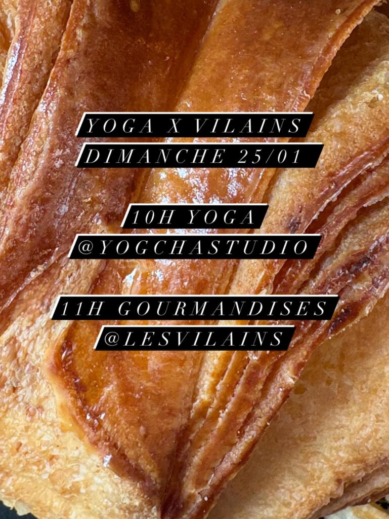 On se retrouve le dimanche 25 janvier à 10h pour une séance de yoga accessible à tous lors de laquelle on vous proposera un réveil musculaire en douceur. Cette séance sera suivie d’un petit-déjeuner / brunch gourmand aux Vilains, pour un latté, un jus ou un verre de vin accompagnés de nombreuses gourmandises salées comme sucrées.